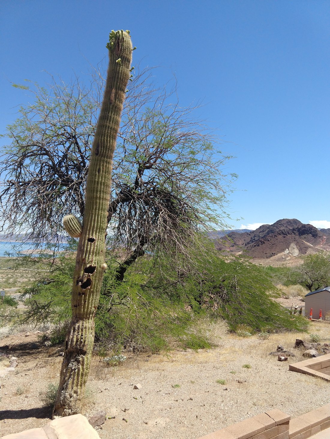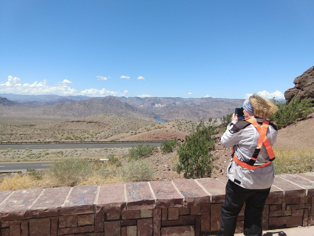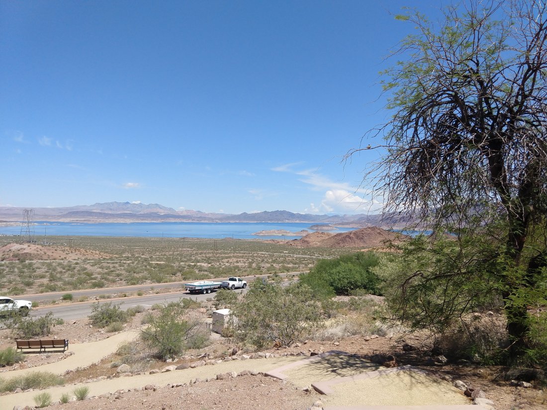 You may be disappointed about the lack of photos on the way. But with the wet, cold and gray it was difficult to justify stopping to snap shots….and much of the way since North Carolina has been despressingly impoverished and dismal.It did serve as a good reminder of how beautiful the places we live are in comparison.Starting in North Carolina we passed through the first native American reservation and took the time to refresh our knowledge of the awful history of their abuse by the government and incoming settlers.Oklahoma serves as the prime showcase of all the tribes, 38 of them, that were forced from their native lands into reservations in Oklahoma….at a substantial cost of lives in these forced marches. Very sad.We have finally entered dry warm climate of Nevada. Currently at Hoover dam/ Lake Mead not far from Las Vegas. We are considering returning to the four corners state area (Utah, Arizona, Colorado and New Mexico) on our return trip east in June. Cold, snow and rain prevented us from visiting that area this trip.The high desert of northern Arizona and New Mexico that we did pass through, with it’s cliffs of many colors, is memorable.And it may be warm and dry enough to dare stop for photosCactus in bloom in Boulder City, NevadaNorthwestern Arizona/Nevada